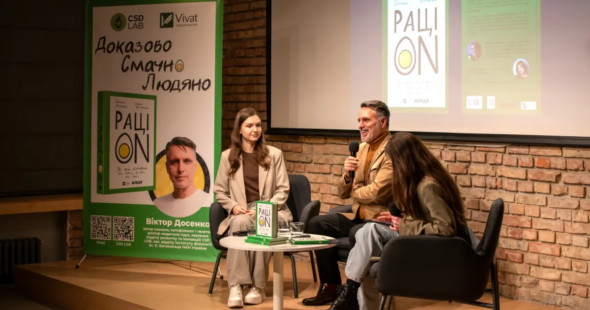 20 жовтня у книгарні Сенс відбулася презентація книги «РаціON. Як їжа впливає на нас, а ми на неї» — науково-популярного видання про харчування, еволюцію та усвідомлені стосунки з їжею. Автор книги — патофізіолог і генетик, керівник відділу розвитку та інновацій CSD LAB Віктор Досенко.